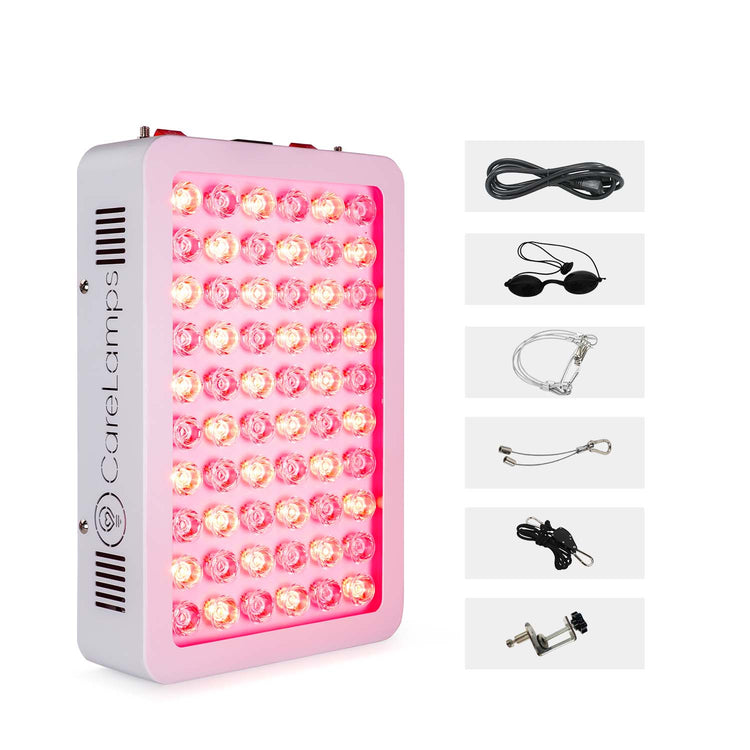 The Derma Red P150 is a small, face-sized light device that can be used in the comfort of your home, featuring 60 5w LED diodes in your desired configuration. Compatible with 110-240v, the device offers dual switches for easy toggling between 660nm (Red light), 850nm (Near-Infrared), or a combination of both. It is designed to be either stand-alone or door/wall mounted, including an over the door hook for effortless installation.